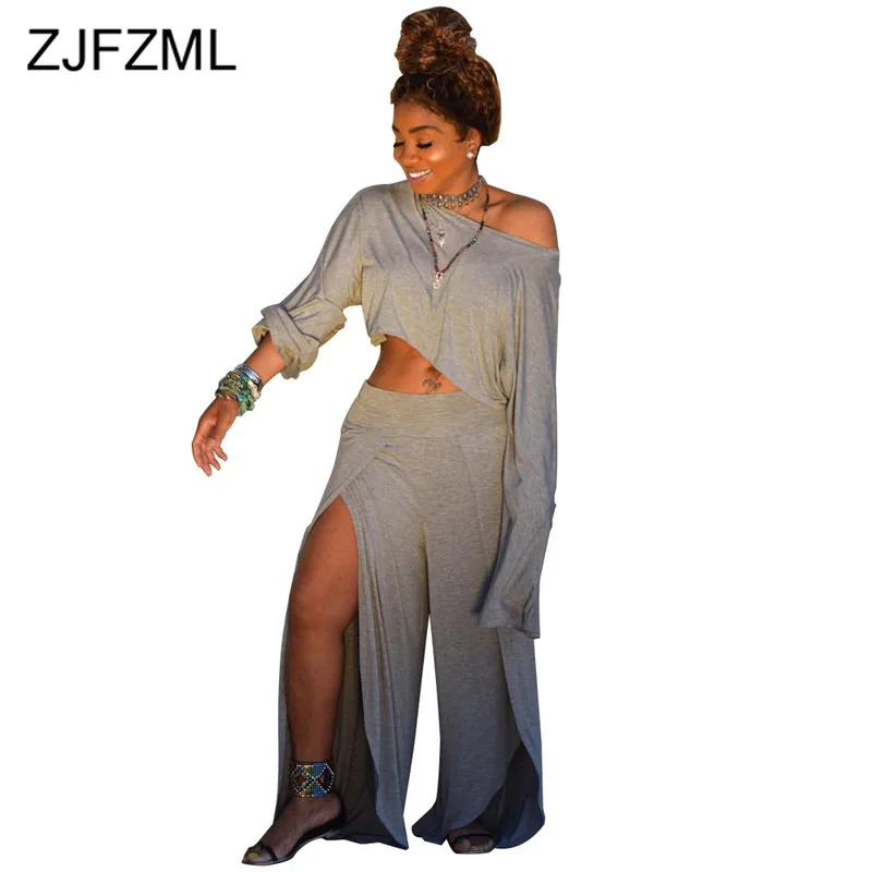وانت debido aالبحث عن معلومات Sets, en ese momento عارضة 2 قطعة مطابقة مجموعة ملابس حريمي واحدة الكتف كم طويل المحاصيل الأعلى + السامي سبليت واسعة الساق بانت رياضية اثنين قطعة الزي es posible introducir taste
