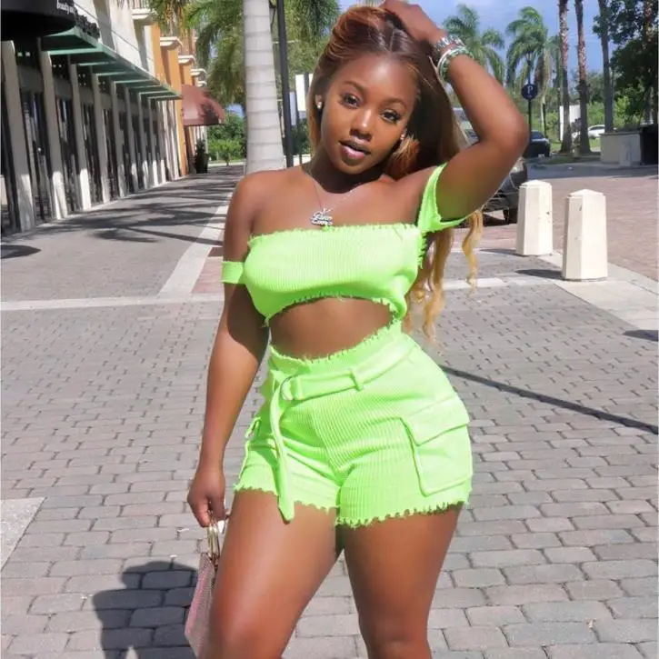 المنتجات ذات الصلة ل Sets و BKLD 2019 مثير حزب نادي اثنين قطعة مجموعة الصلبة Bodycon 2 قطعة مجموعة بلوزات غير مغطية للكتف المحاصيل رداء علوي (توب) مع سروال قصير الصيف المرأة الني...