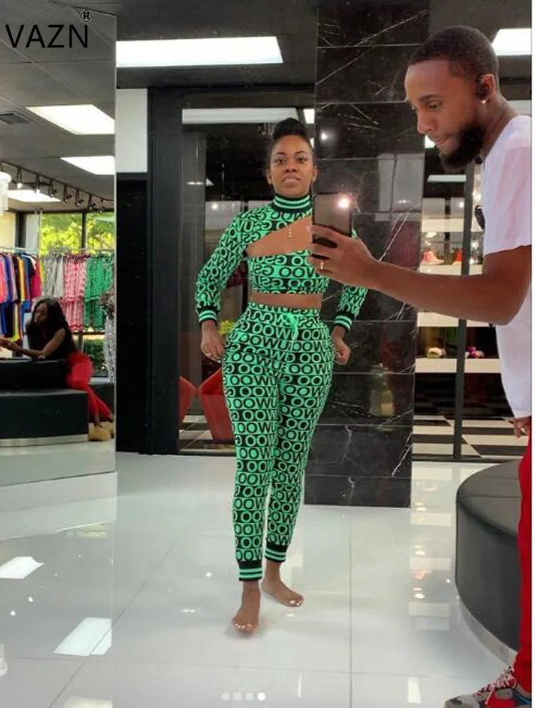 معرض ل VAZN تصميم خاص 2019 جديد شعبية نمط 2 قطعة المرأة مجموعة مخطط س الرقبة كامل كم الجوف خارج طويل فستان أطفال مع سروال داخلي LZL552